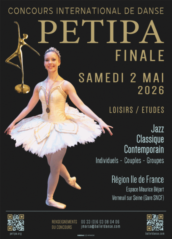 FINALE CONCOURS PETIPA 2026 Samedi 2 Mai 2026 Espace Maurice Béjart / Verneuil sur seine (78)Pour la Finale tous les candidats sélectionnés présenteront une variation libre ou la variation imposée de la 1/2 Finale
