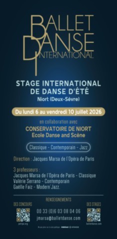 STAGE D'ETE DE NIORT ( DEUX-SEVRES)CLASSIQUE / CONTEMPORAIN / JAZZdu Lundi 6 Juillet au Vendredi 10 Juillet 2026NIORT (Deux-Sèvres)Gare SNCF de Niort
